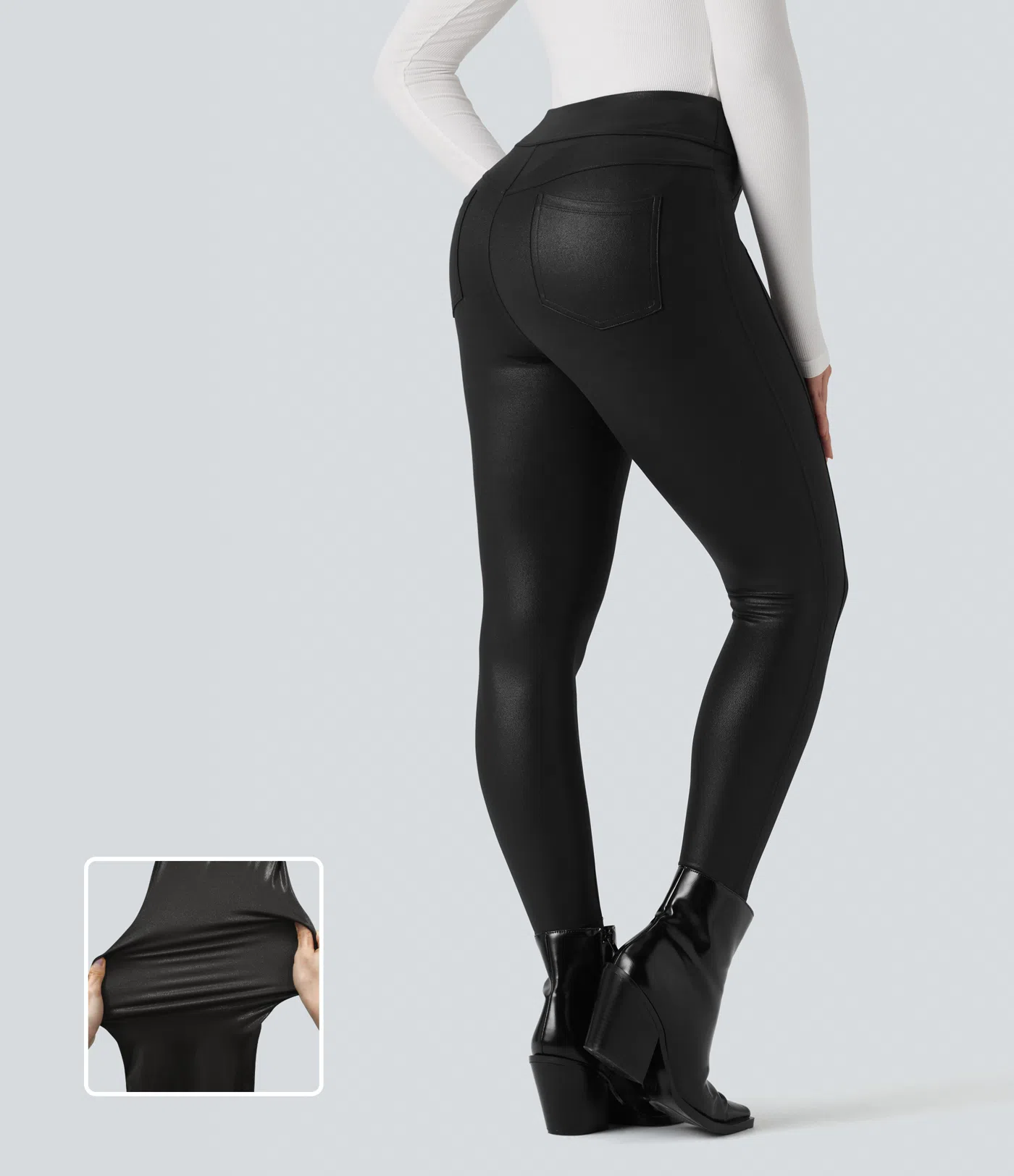 $57.95 USD$62.95 USDHalara Ultrasculpt™ Faux Leather Shine High Waisted Tummy Control Yoga Leggings with Pockets