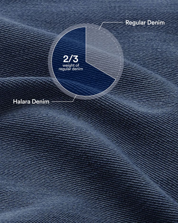 Având doar 2/3 din greutatea denimului tradițional — aproximativ la fel ca un iPhone — acest denim este atât de ușor încât pare aproape lipsit de greutate.