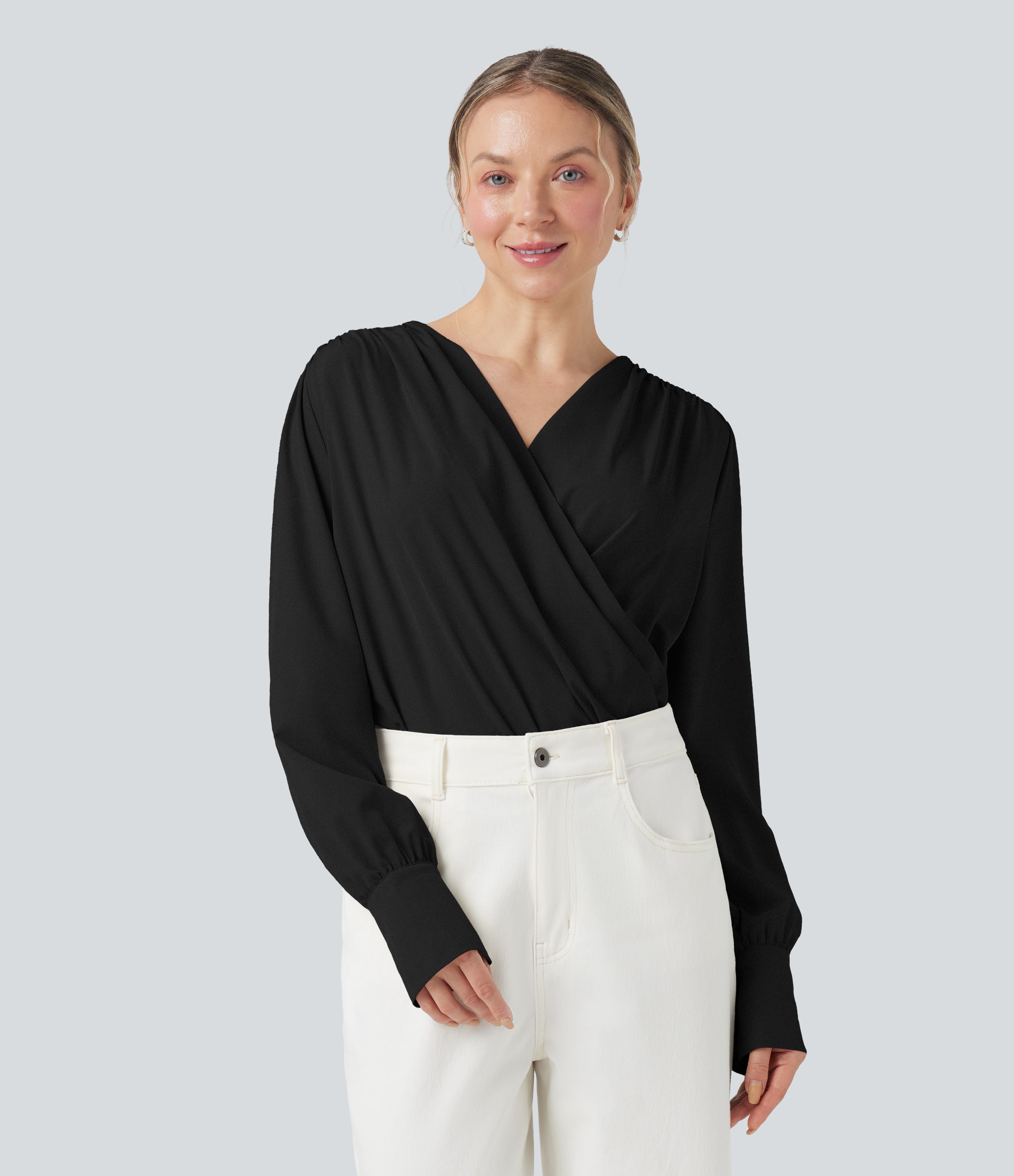 Breezeful™ V-Ausschnitt Überkreuz Langarm Schnelltrocknender Arbeits-Bodysuit