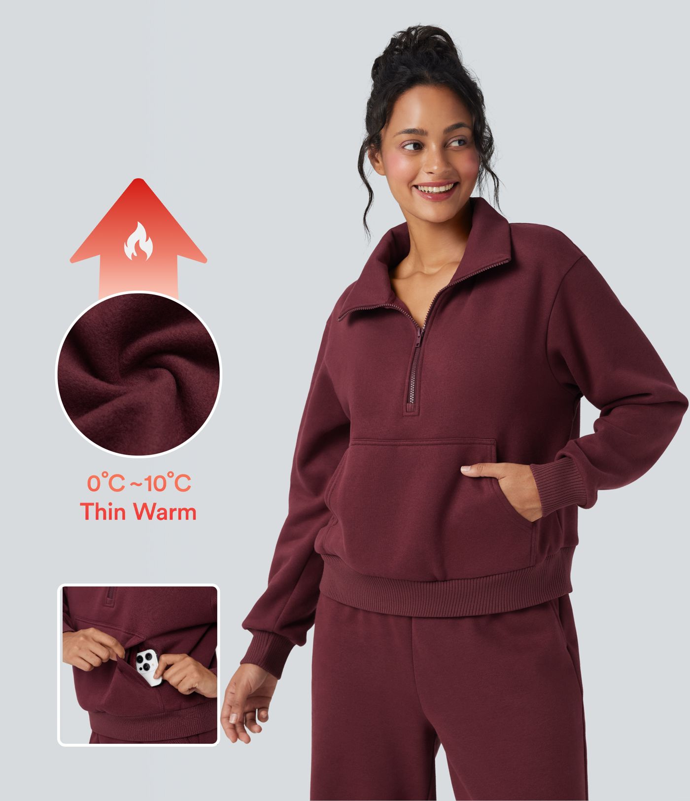 Half Zipper Fleece Relaxed Casual Sweatshirt with Pockets