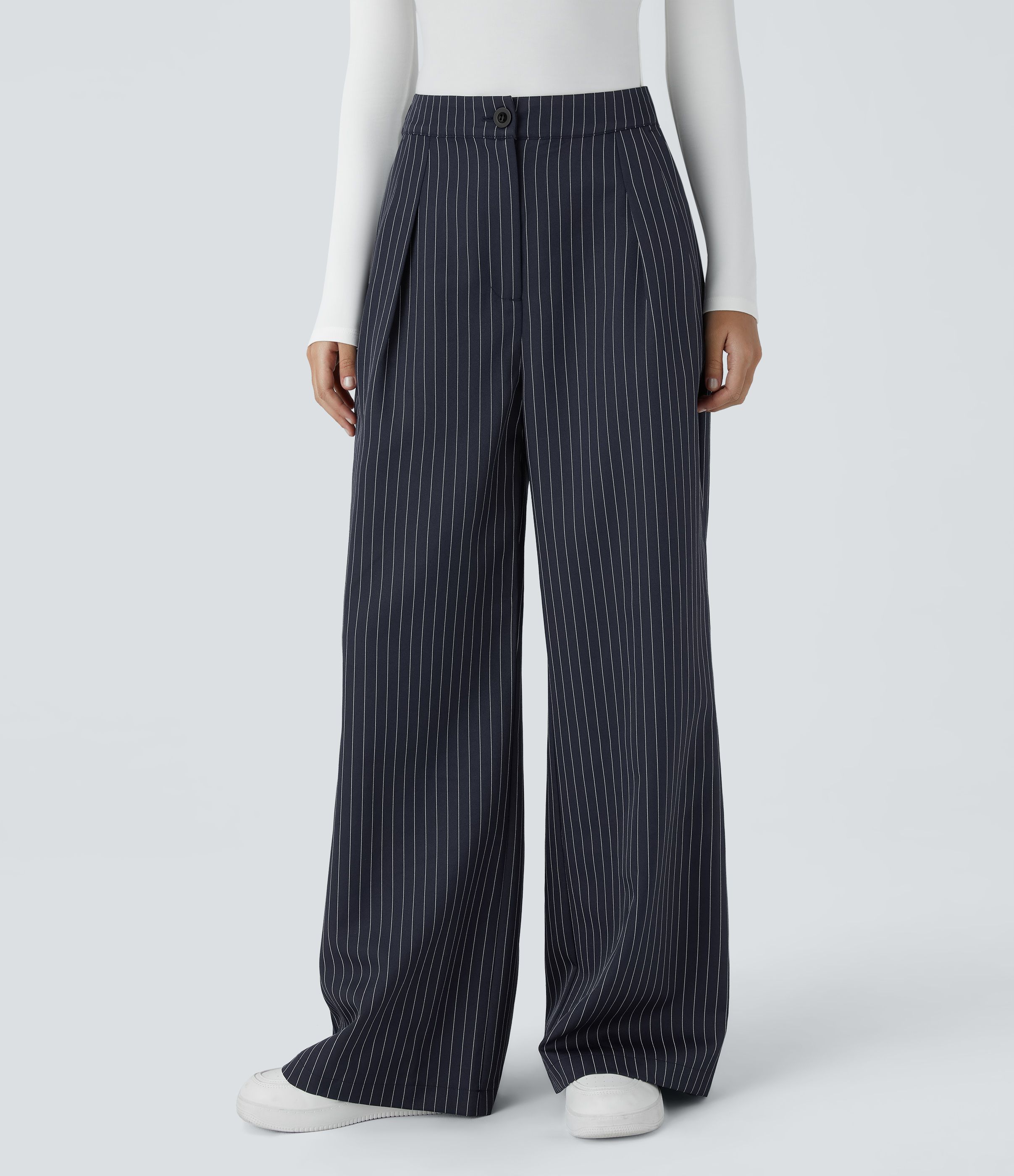 Høyt liv Glidelås lomme Vide ben Stripete Arbeidsbukser
