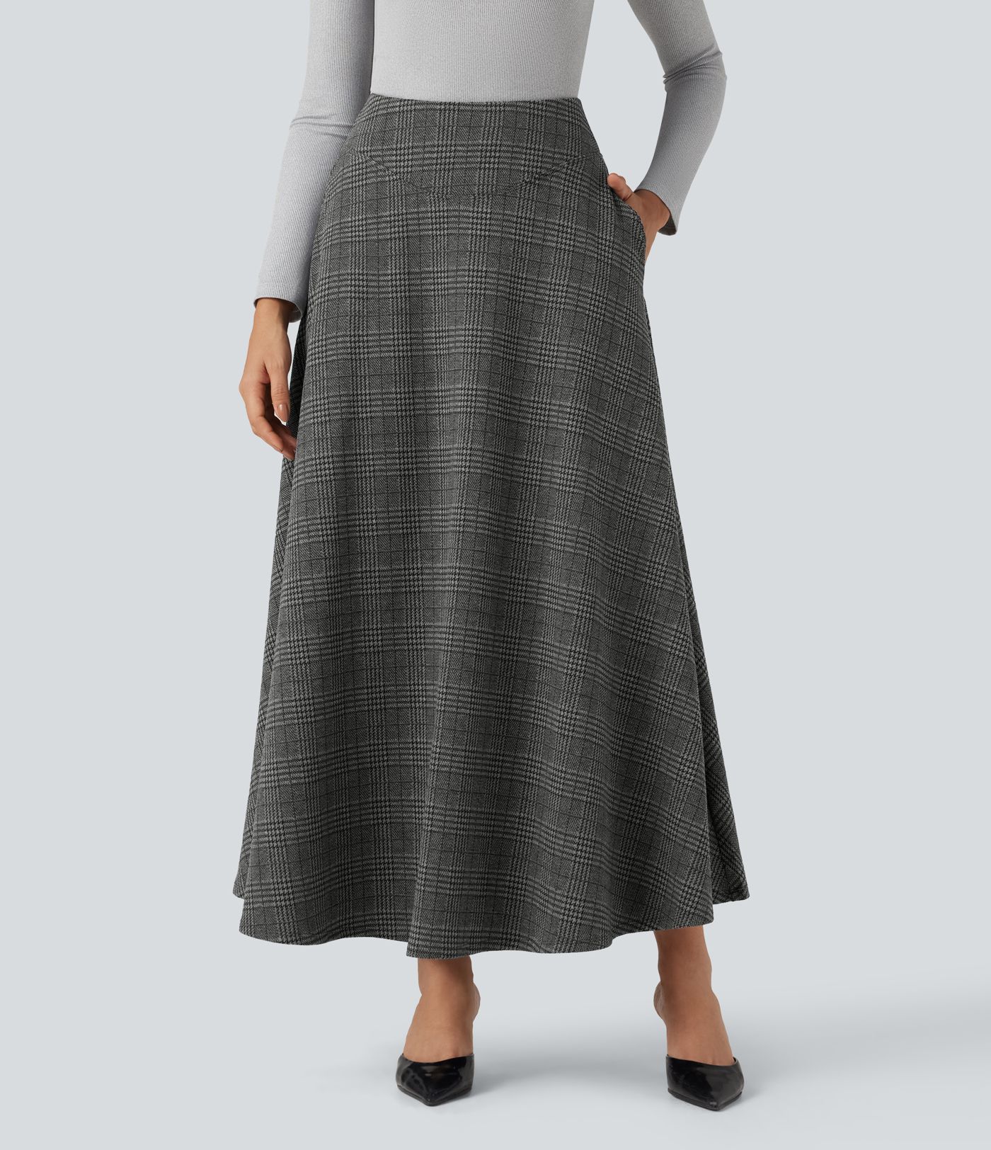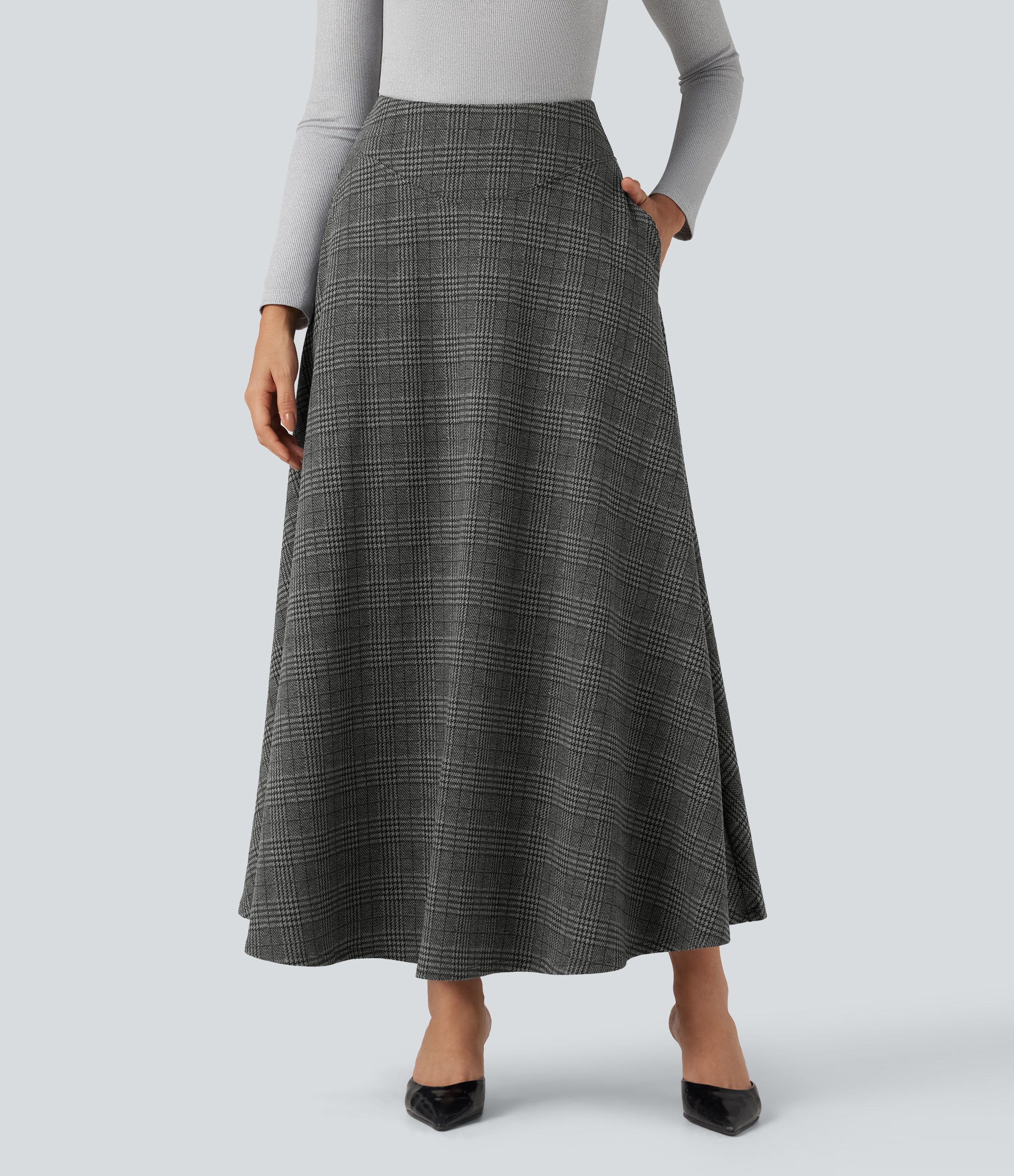 Hoch taillierter Maxi-Rock in Hahnentritt-Karo für die Arbeit mit Taschen