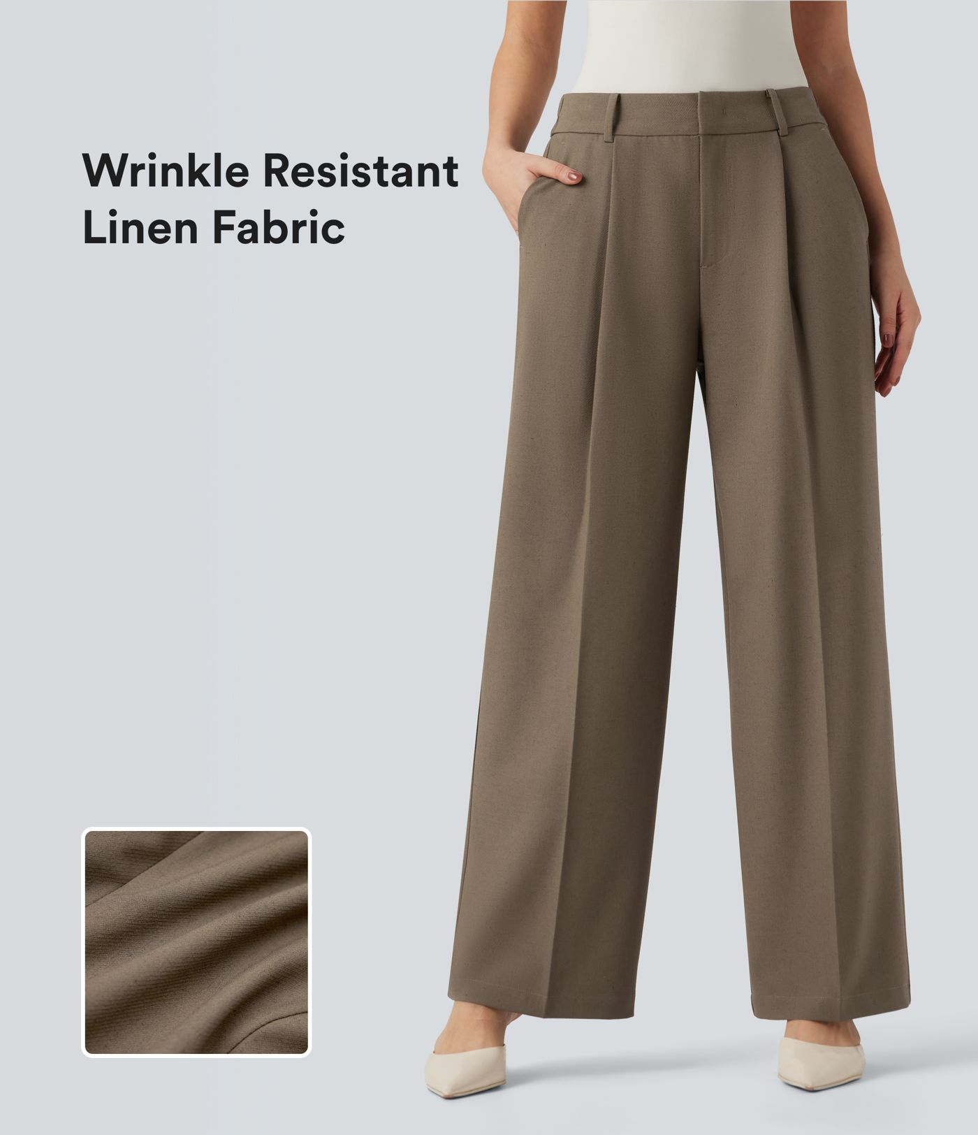 High Waisted Straight Leg Work Linen Pants with Pockets