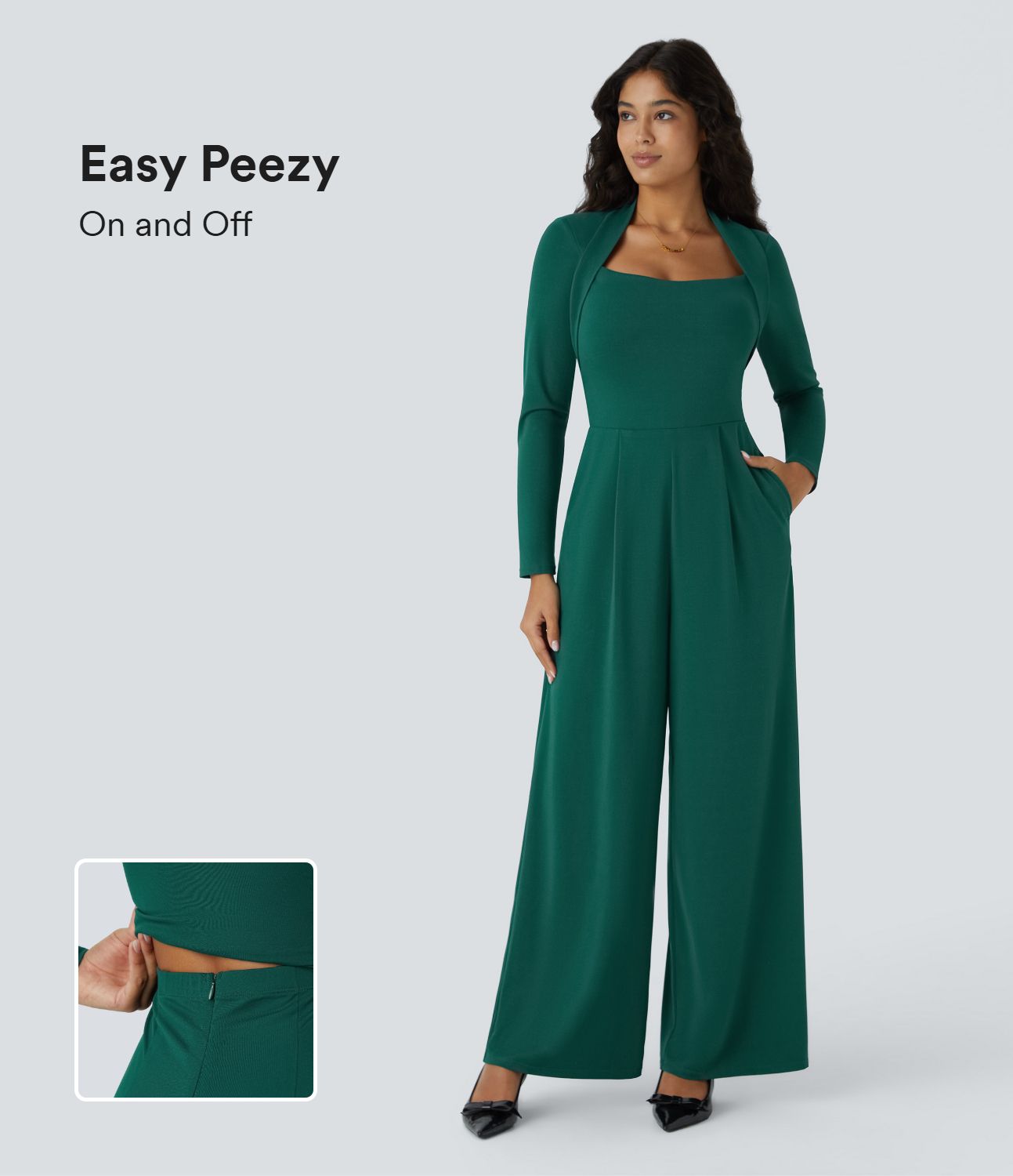 Long Sleeve Pocket Wide Leg Jumpsuit-Easy Peezy