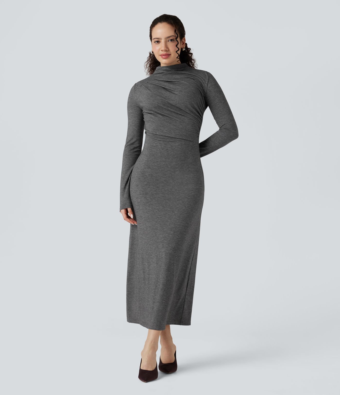 Vestito midi casual a manica lunga con collo a lupetto
