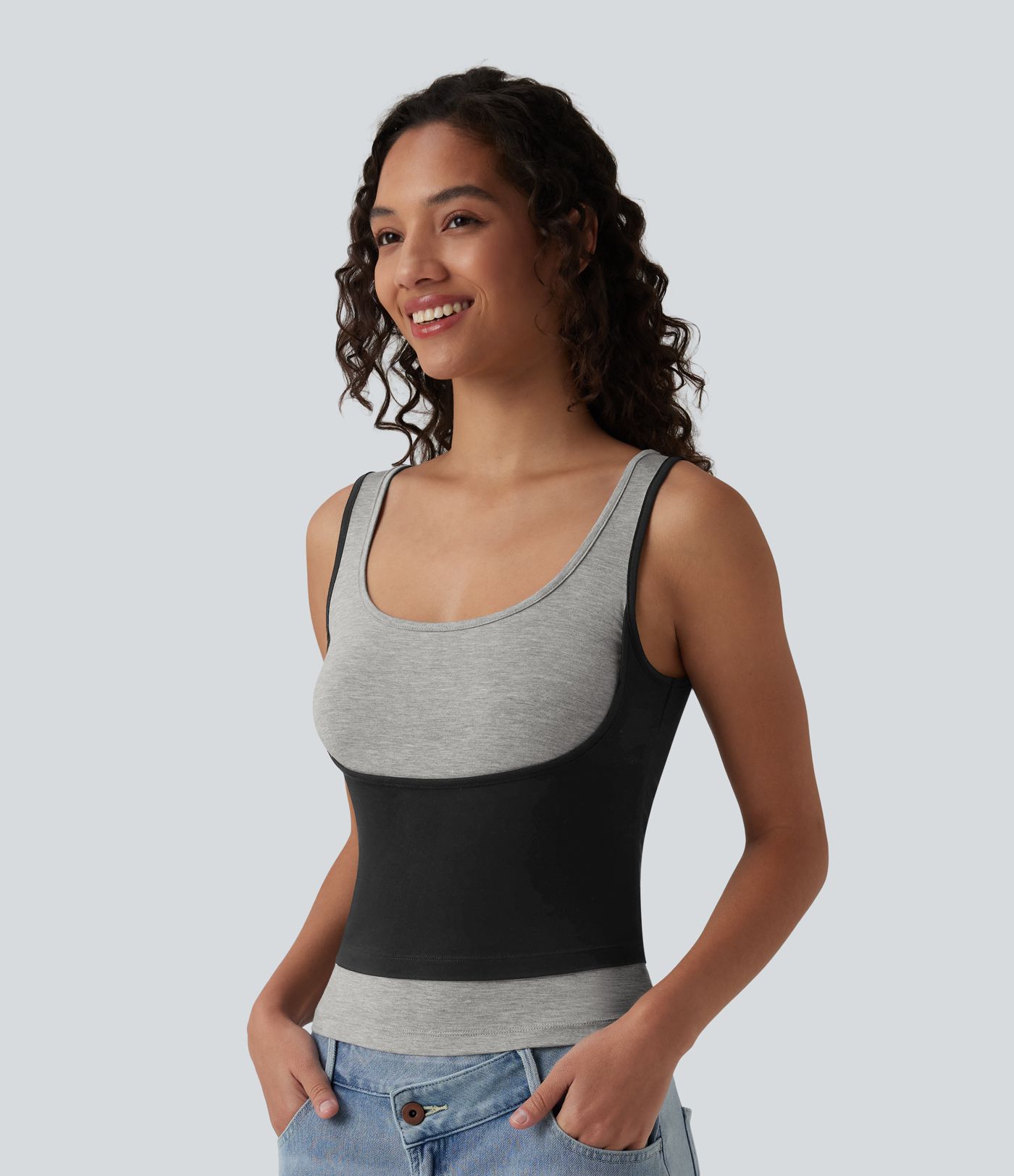 Litablokkaður afslappaður ermalaus toppur