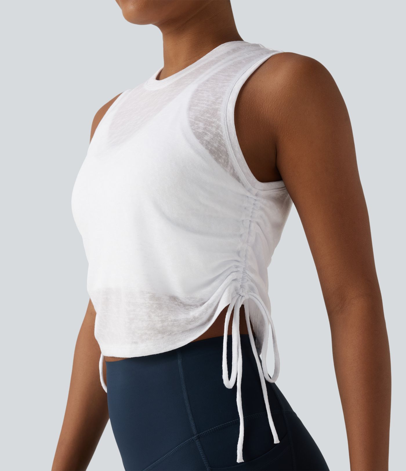 Crossover Cut-out Back Drawstring Hem Workout Tank Top