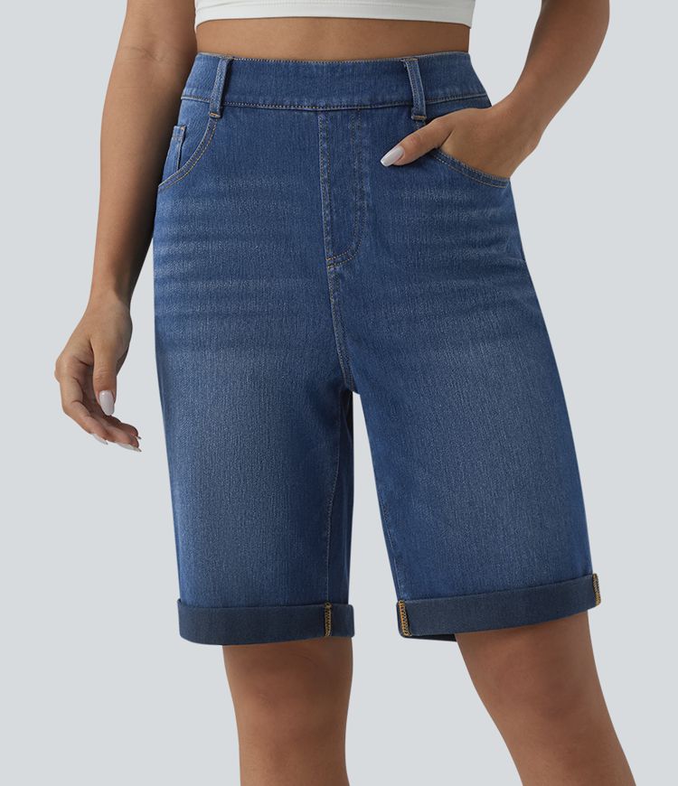 Halara Flex™ högmidjade jeansshorts med uppvikt fåll och fickor