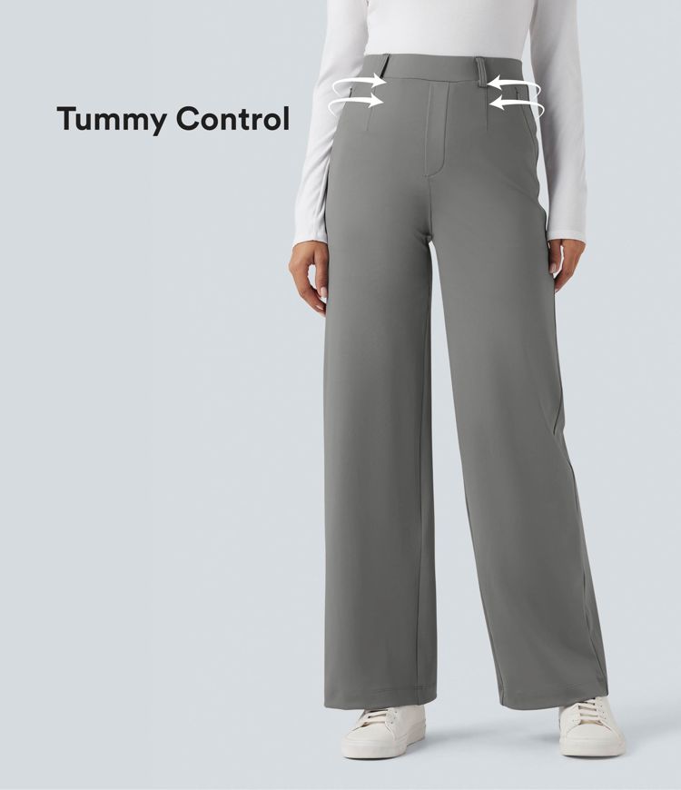 Halara Flex™ pracovní kalhoty s vysokým pasem a zpevněním v oblasti břicha, rovné nohavice, s kapsami