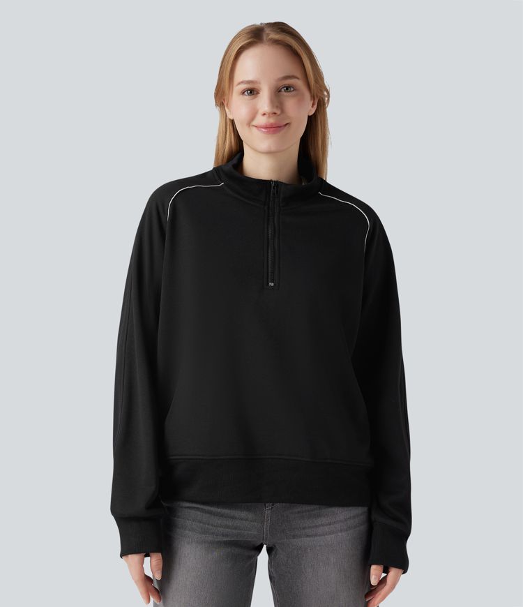 Lässiges Raglan-Sweatshirt mit Halbreißverschluss, langen Ärmeln, Color-Block und Taschen