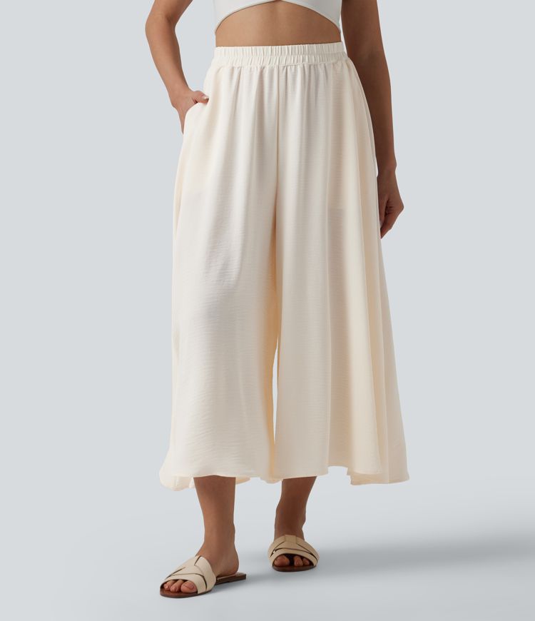 High Waisted Flowy Linen-Feel Pants with Pockets