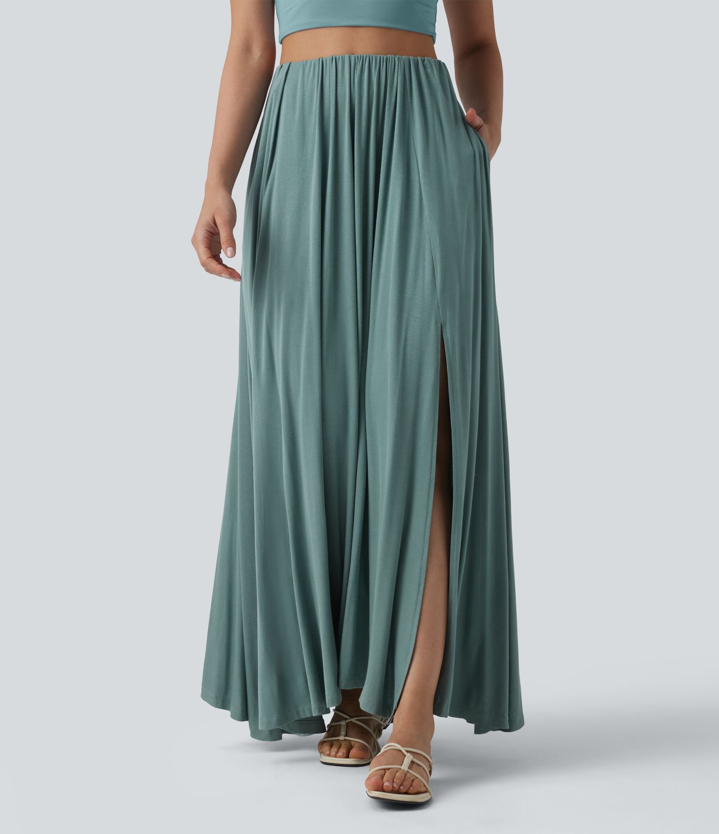 High Waisted Flowy Maxi Casual Skirt with Pockets