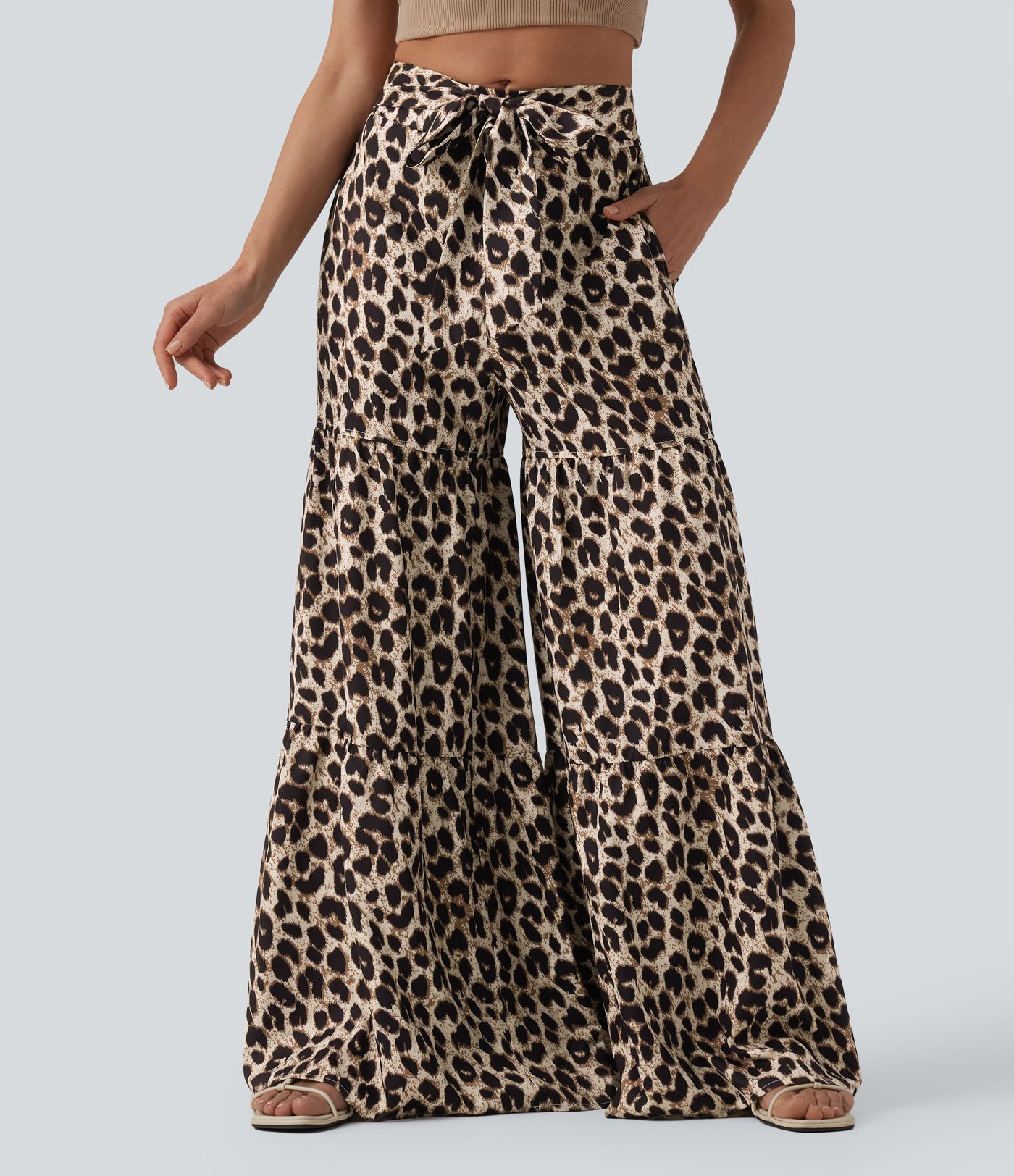 Srednjeg struka široke svakodnevne hlače s leopardovim uzorkom, s vezanjem sprijeda i džepovima