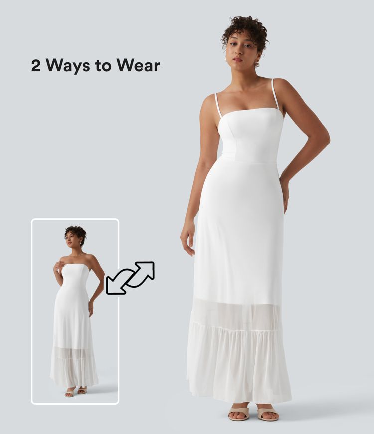 Non-Removable Pad Contrast Mesh Ruffle Hem Flowy Maxi Slip Dress
