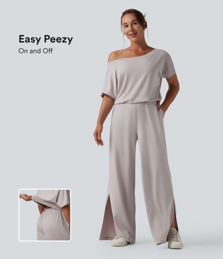 Mono casual de un solo hombro con manga corta, abertura en el bajo y bolsillos — ¡Súper fácil!
