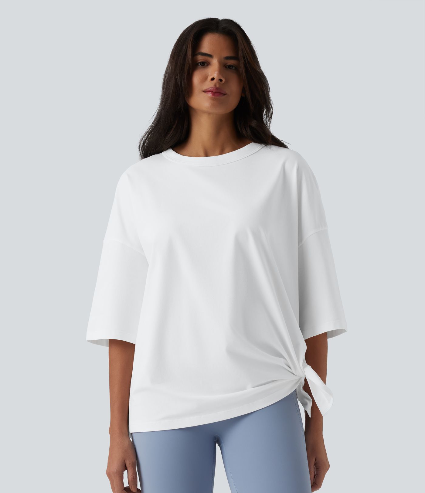 Round Neck 3/4 Sleeve Tie Side Workout Cotton Sports Top