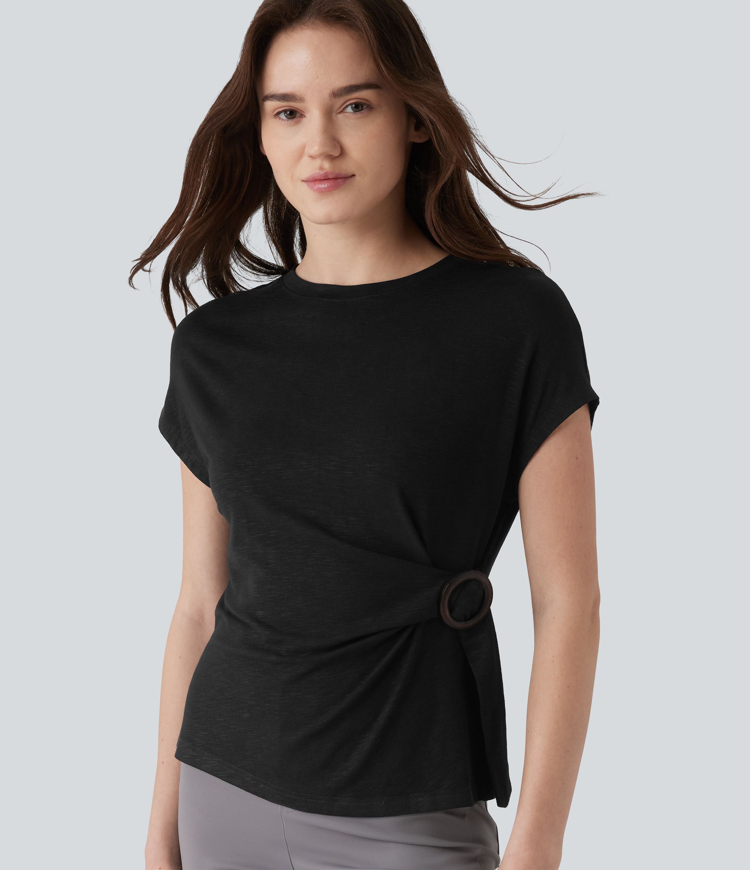 Round Neck Cap Sleeve Work Top
