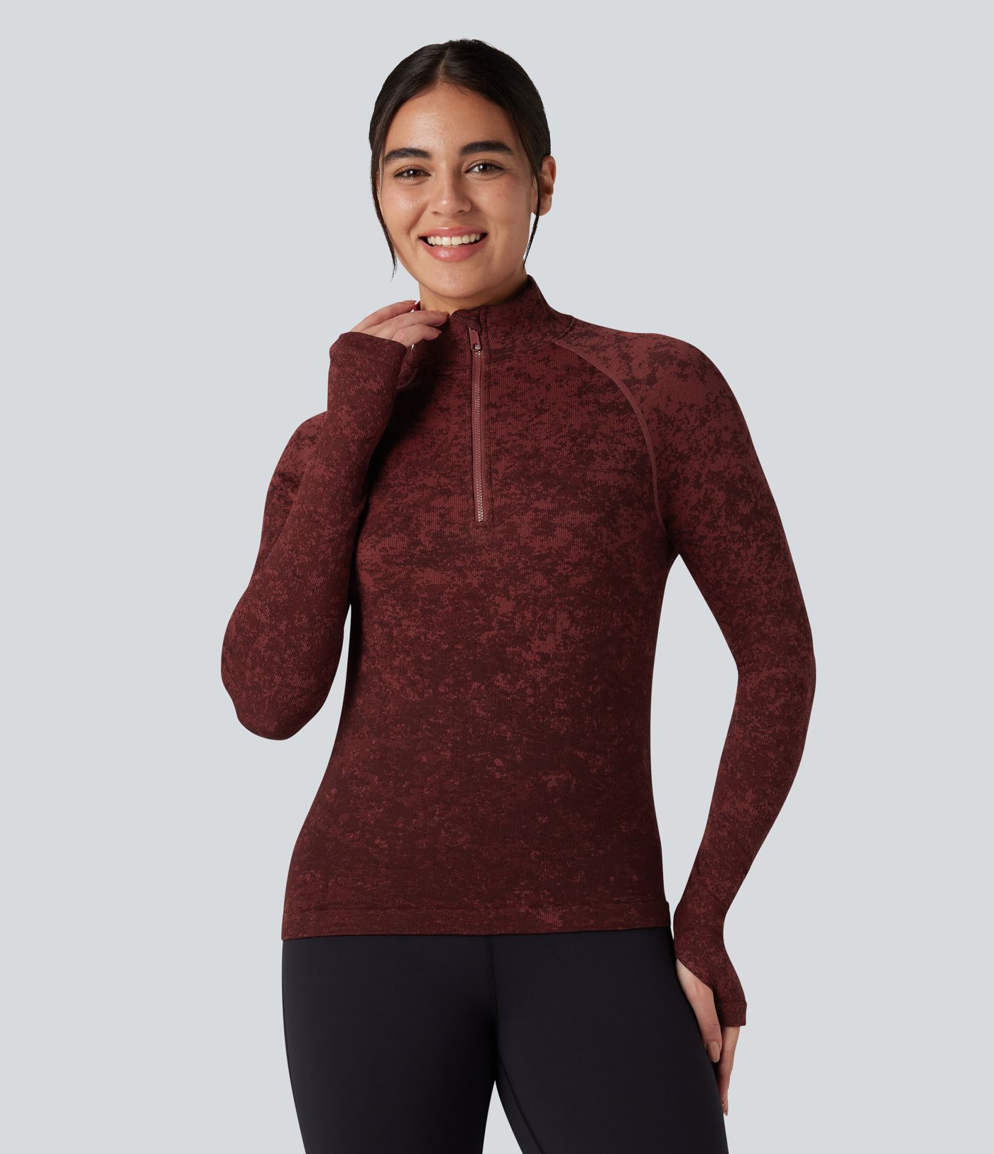 OneForm Seamless Flow Half Zip Long Sleeve Thumb Hole Workout Sports Top