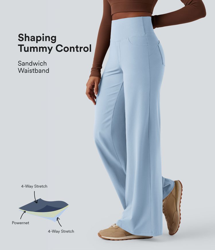 DayStretch High Waisted Tummy Control Wide Leg Yoga Pants with Pockets