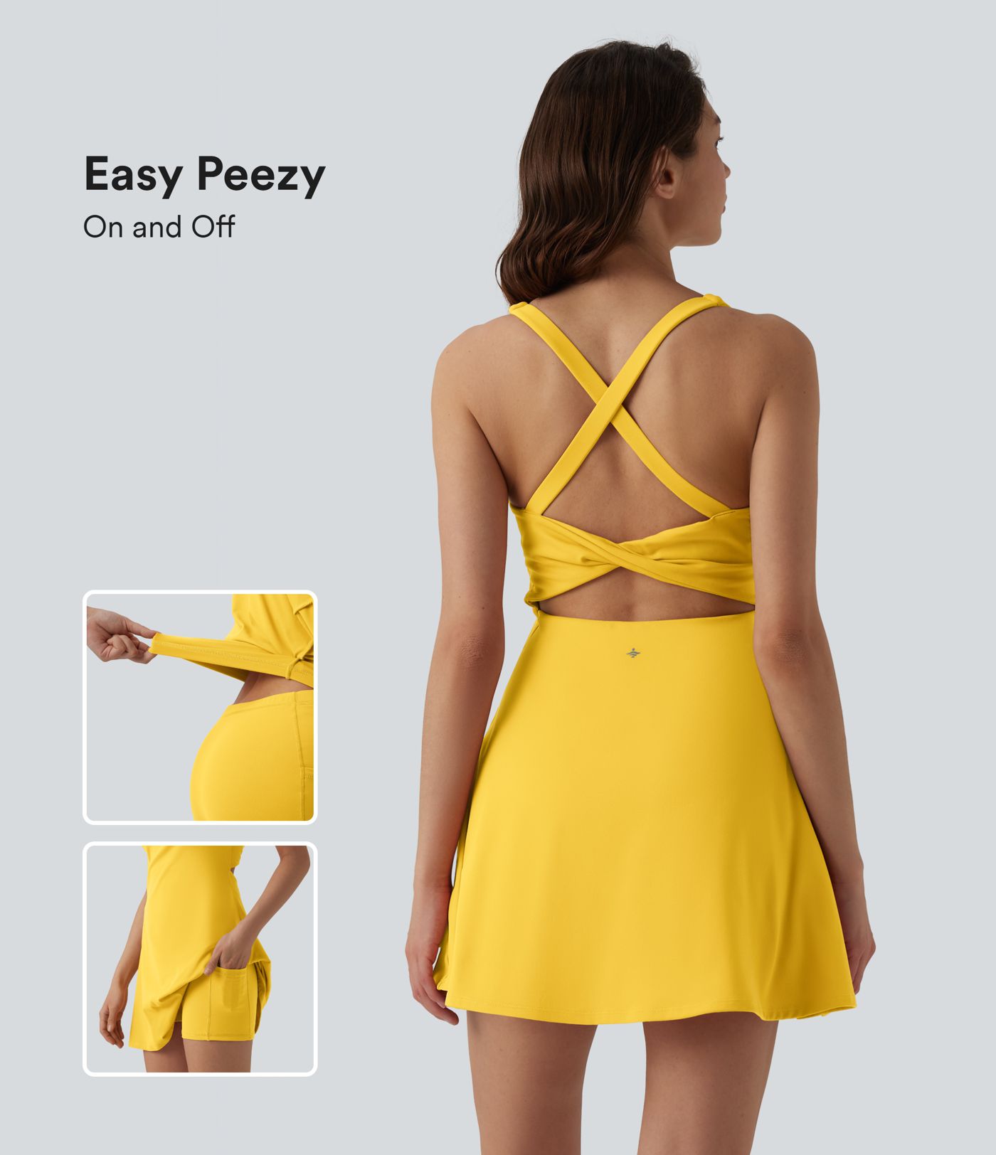 SoftlyZero™ Rochie mini 2-în-1 pentru dans și activă, din pluș, cu decolteu în V și buzunare — Ediția Easy Peezy