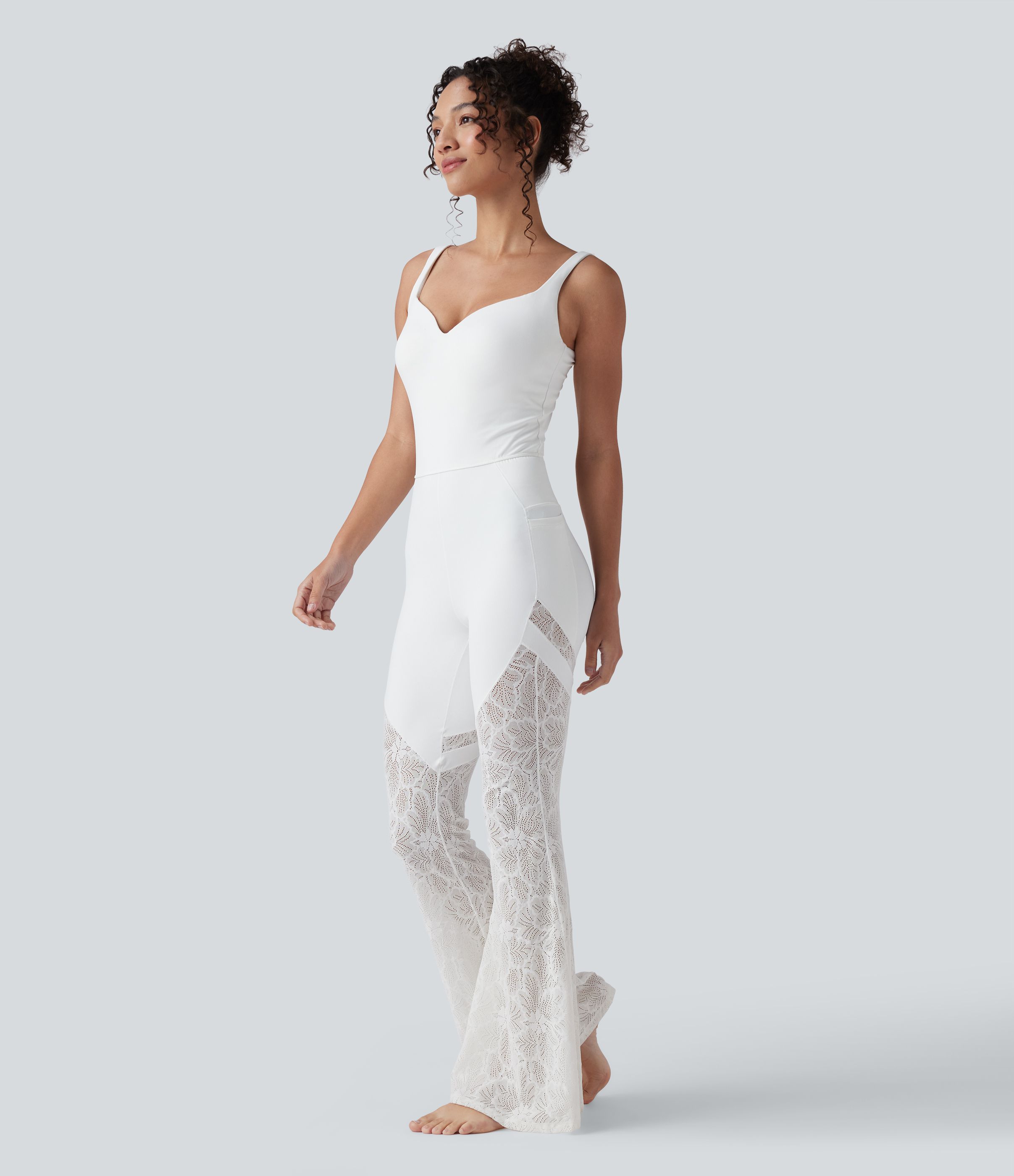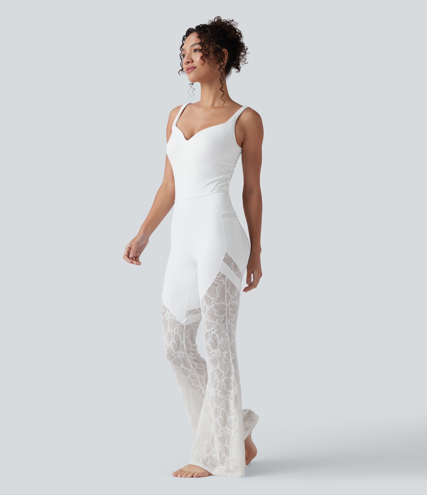 SoftlyZero™ Sweetheart Neck Cut Out Contrast Lace Bootcut Yoga Jumpsuit with Pockets-UPF50+